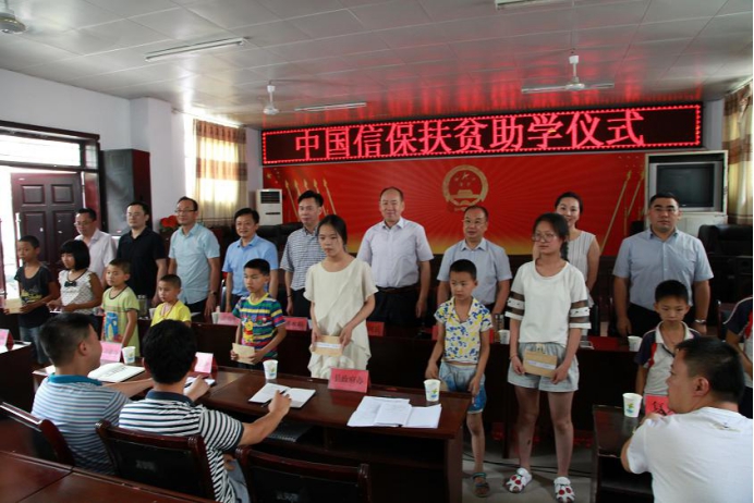 中国信保认真贯彻落实习近平总书记扶贫开发战略思想,落实党中央精准扶贫、精准脱贫决策部署,出台了扶贫专门措施和制度文件,在系统内精挑细选优秀干部挂职定点扶贫县副县长和贫困村驻村第一书记,从组织、人员、资金等多方面给予大力支持,创新扶贫方式,以教育精准扶贫为抓手,辅助以产业扶贫建立造血机能,同时采取多种扶贫方式帮扶定点县脱贫攻坚。