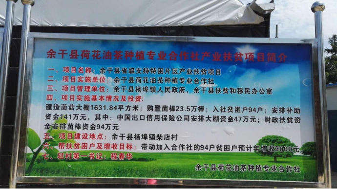 2017年9月,中国信保支持余干县在11个深度贫困村成立菌菇种植合作社。