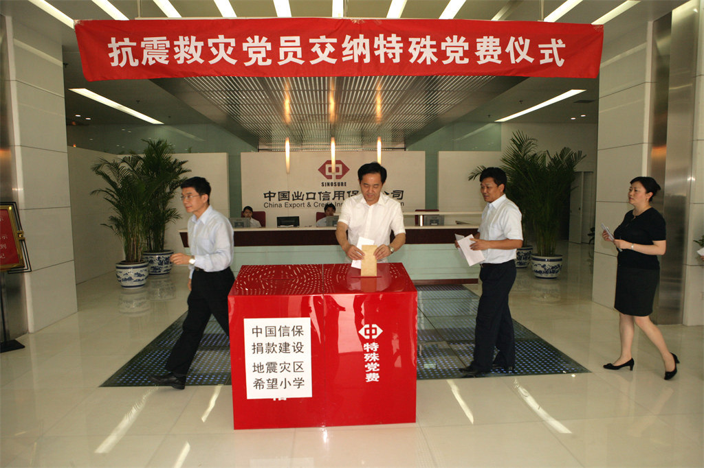 中国信保广大干部员工向汶川地震灾区捐款并积极踊跃交纳特殊党费(2008)