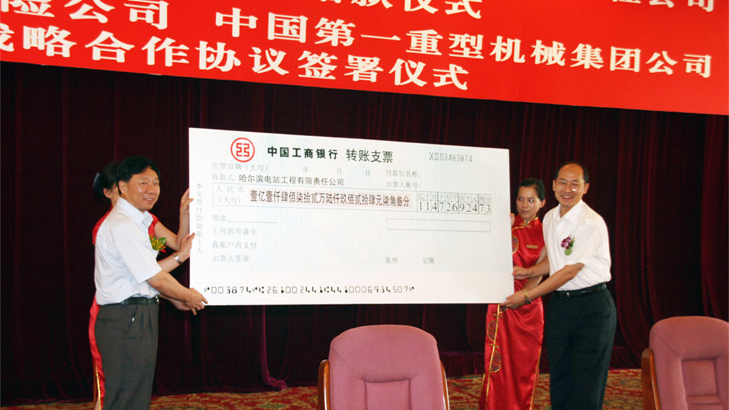中国信保在哈尔滨举办与哈电集团赔款仪式(2009)