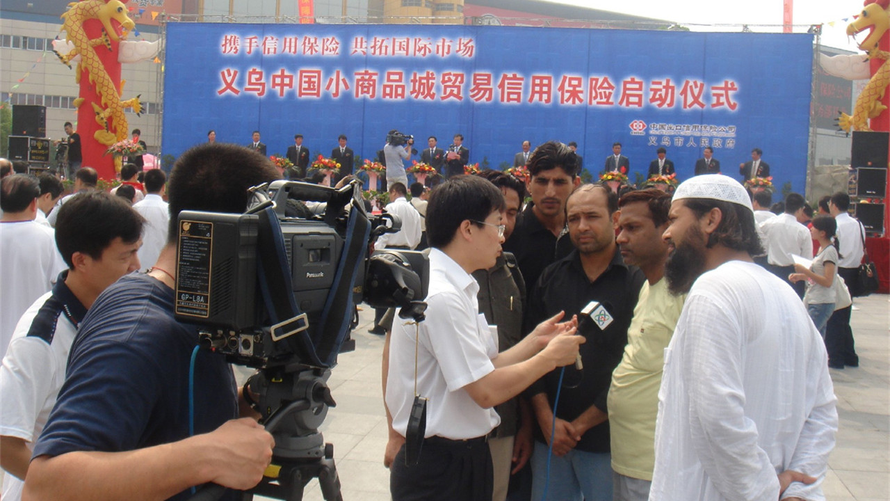 义乌中国小商品城贸易信用保险启动仪式上,央视记者采访中东客商(2007)