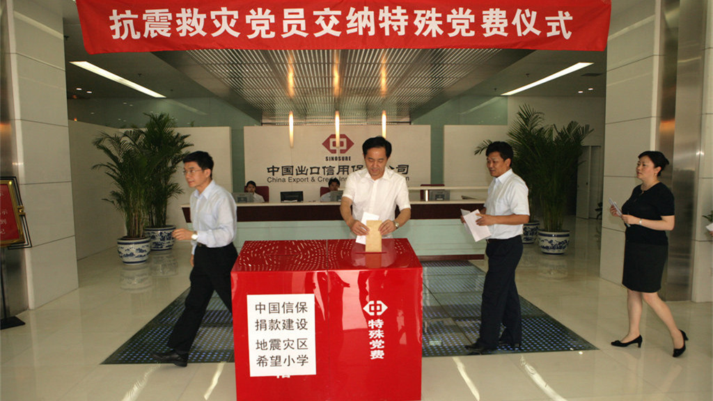 中国信保广大干部员工向汶川地震灾区捐款并积极踊跃交纳特殊党费(2008)