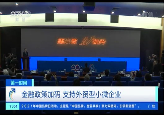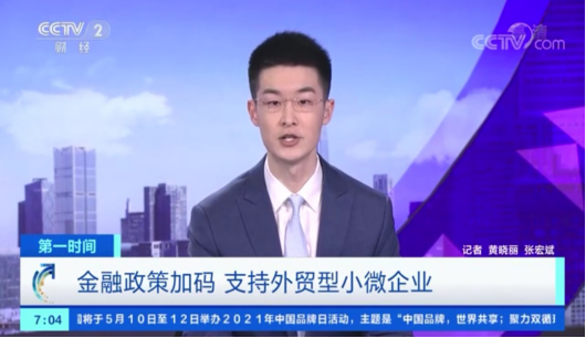 央视财经频道《第一时间》:金融政策加码,支持外贸型小微企业