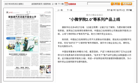 《河北日报》:让小微企业享受更多信保转型红利