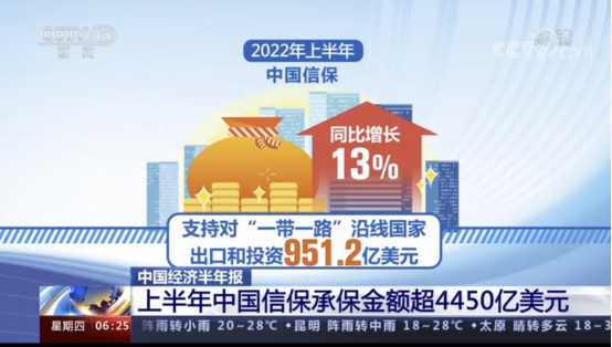 中央广播电视总台:上半年中国信保承保金额超4450亿美元