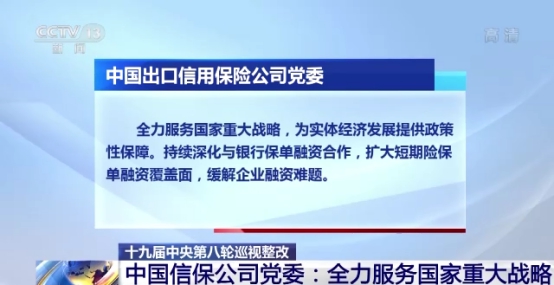 9月13日,中央广播电视总台新闻频道《新闻直播间》栏目,报道了中国信保党委巡视整改的情况。以下是详细报道和截图: