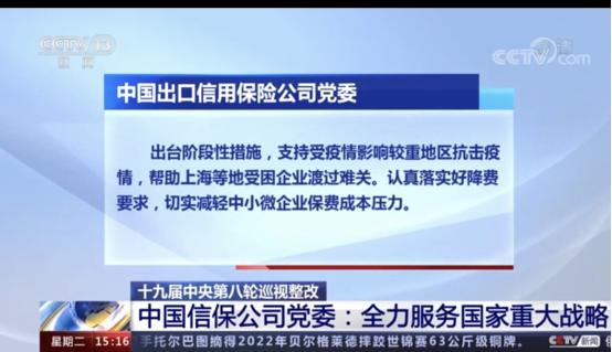 中国出口信用保险公司党委在整改过程中,全力服务国家重大战略,为实体经济发展提供政策性保障。持续深化与银行保单融资合作,扩大短期险保单融资覆盖面,缓解企业融资难题。出台阶段性措施,支持受疫情影响较重地区抗击疫情,帮助上海等地受困企业渡过难关。认真落实好降费要求,切实减轻中小微企业保费成本压力。