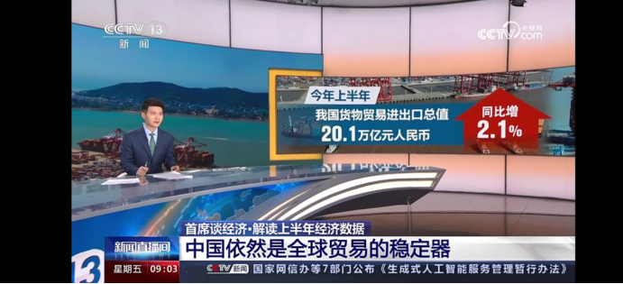 中央广播电视总台报道中国信保首席经济学家解读半年外贸形势