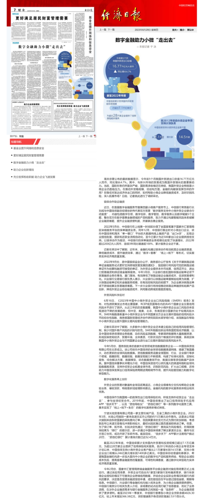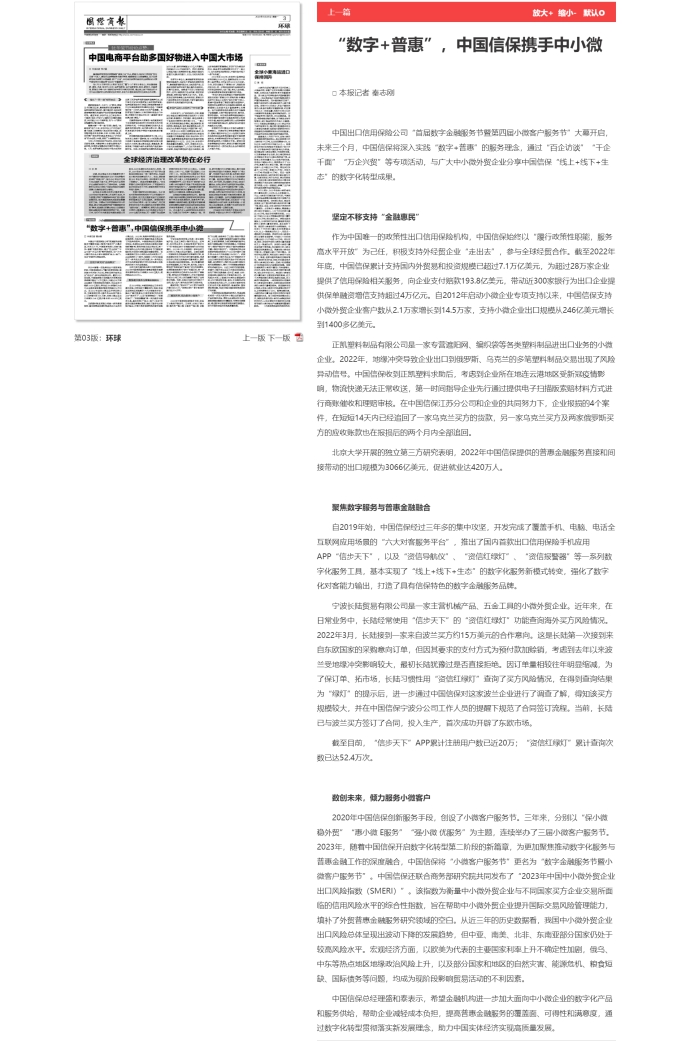 《国际商报》:“数字+普惠”,中国信保携手中小微