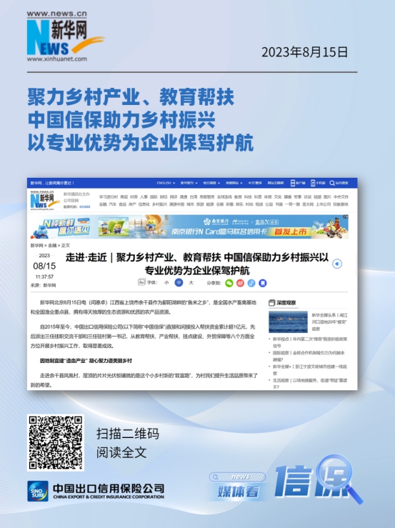 中国信保聚力乡村产业、教育帮扶 助力乡村振兴
