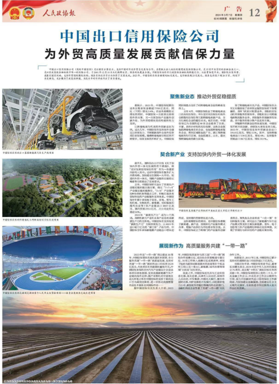 人民政协报:中国出口信用保险公司为外贸高质量发展贡献信保力量